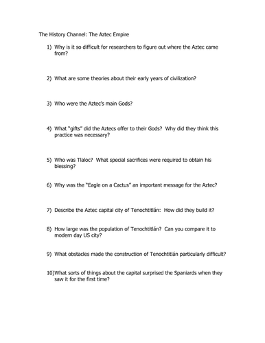 Engineering an empire the aztecs answer sheet ... Engineering And Empire The Aztecs - Displaying top 8 worksheets found for this concept. The guide is divided into five sections which covers the birth, growth and major d, This video guide goes along with the History Channel Engineering an Empire series. In order to read or download ebook, you ...