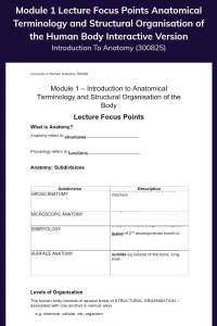 Use appropriate anatomical terminology to identify key body structures, body regions, and directions in the body; Demonstrate the anatomical position ...
