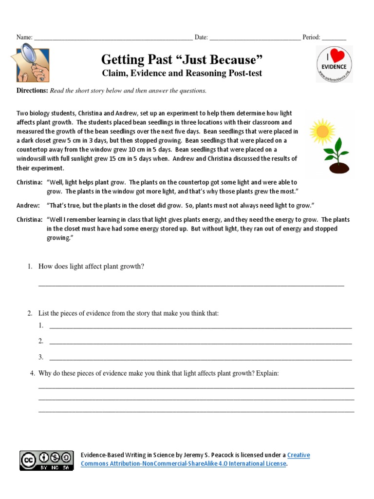 Claims evidence and reasoning practice worksheet answer key