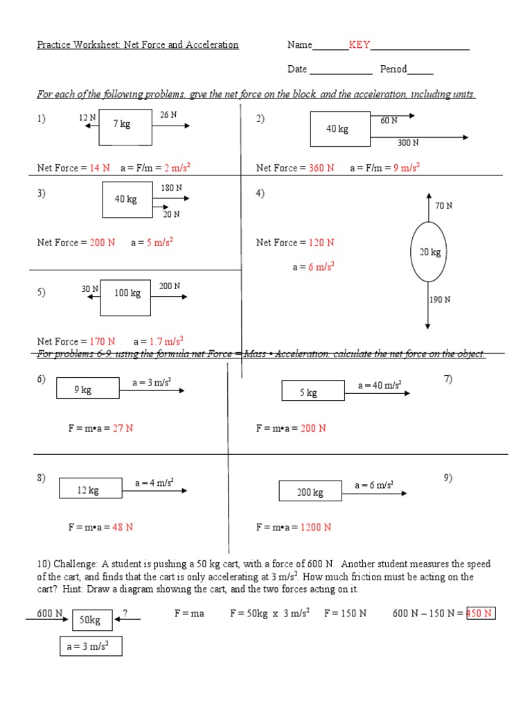 40 practice worksheet net force and acceleration answers
