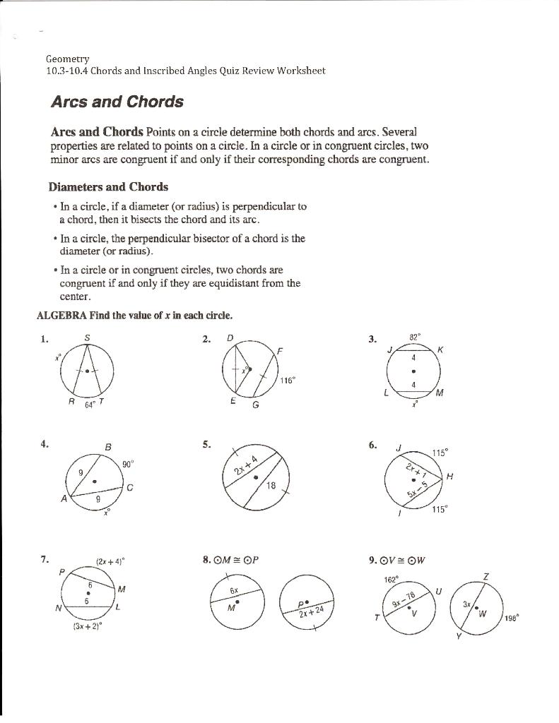 Some of the worksheets for this concept are 11 arcs and central angles, Angles arcs and segments in circles polygons and circles g, Homework section 9 1, Dg4te 883 102406 651 pm 317 chord properties 6, Chords and arc, Postulates and theorems, Arcs and angles formed by secants and tangents from a, 3 name of 2.