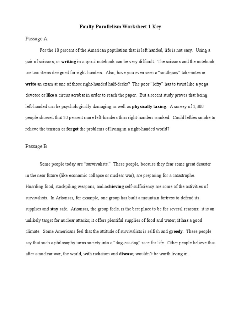 This worksheet was designed to help you better understand the importance of Parallel. Structure. Parallel Structure means using the same construction for ...