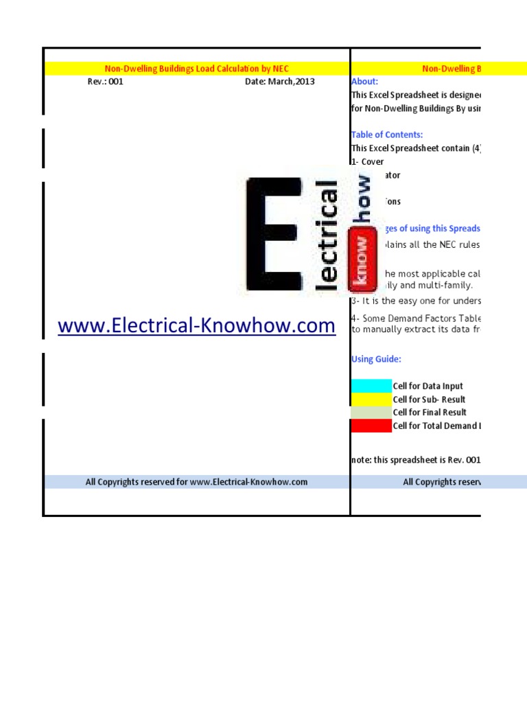 4- Free Download. to download your copy of ElectricalLoad Calculator for Non-Dwelling Units as per NEC Code , just click on the link. In the next article, I will explain load calculations for special Non-Dwelling Buildings (Schools, Existing Installations and New Restaurants) by using NEC optional method. Please, keep following.