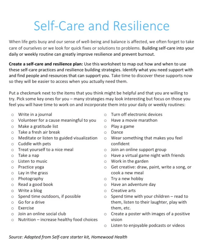 Balance is another common theme on this site, but that's because having a balanced life is vital to having a successful and fulfilling life. Self-Care Worksheet Once you've finished the Self-Care Assessment Quiz and got your results you will want to start making changes to your routines.