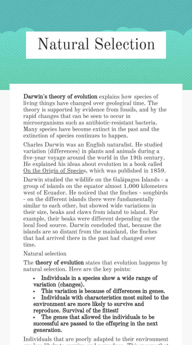 Darwin, Galapagos, Evolution Vocabulary 16 terms & definitions includes a worksheet & answer key. It is a great list of terms that can be used as a study guide, to make flashcards or as a quiz. Darwin, Galapagos, Evolution 16 terms Vocabulary & definitions The definition of each term