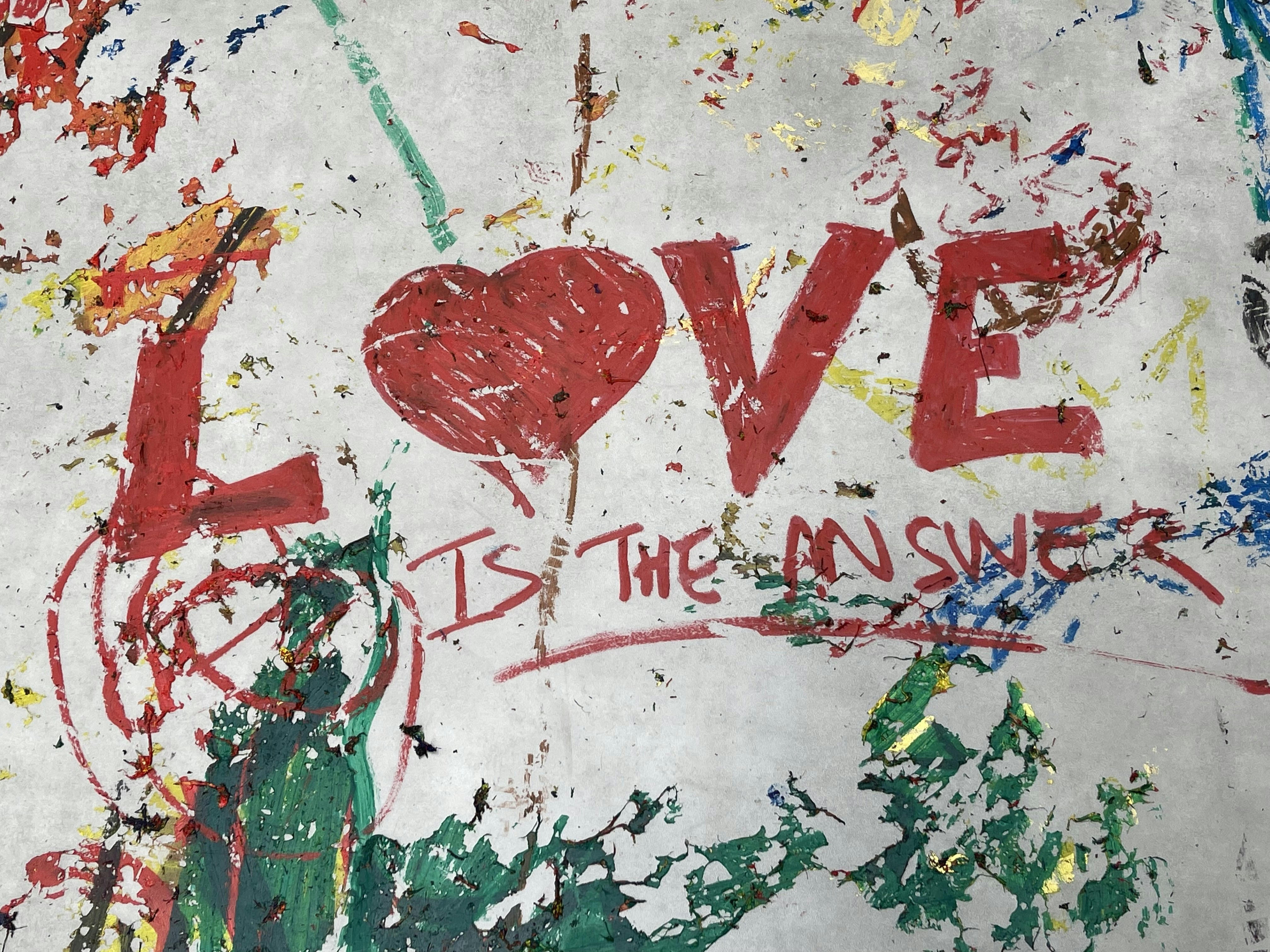 Graffiti translation: âThe last breath I'd want to give, Only to be able to know, Whose palm you breath into now, With whom you await the day.â
