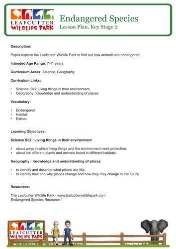 PDF Endangered Species Lesson Plan conservation of endangered species for students of all ages. This Lesson Plan was developed to provide elementary through high school teachers with a special resource to facilitate 6. Pass out the "Local Endangered Species" worksheet. 7. Explain to students that each of them will investigate an...