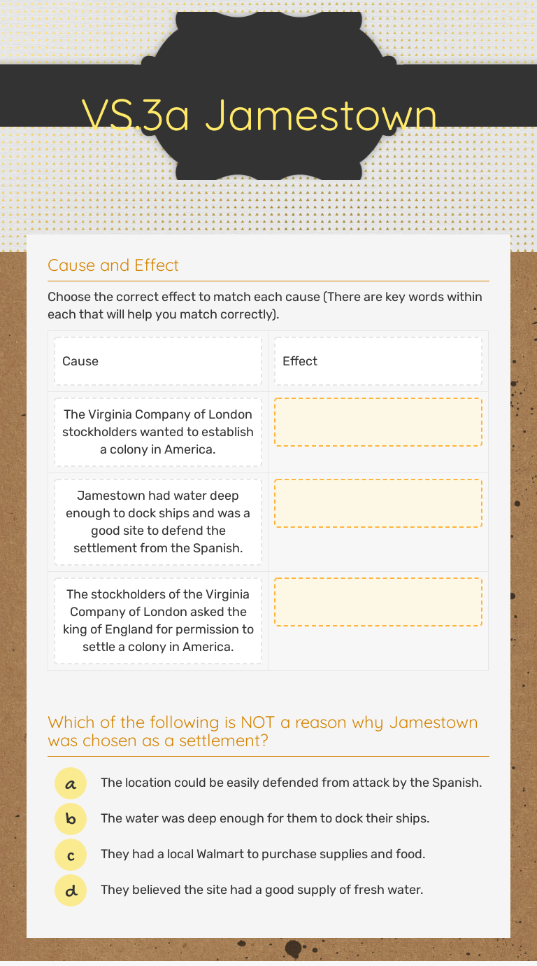 PDF Jamestown colony worksheet 5th grade Jamestown colony worksheet 5th grade. SharePinterestTweetGoogleMail Jamestown is a story that fascinates adults and children. 17th Century Jamestown was a place of adventure, misery, and later, success. Every year I look forward to teaching my students everything about this tumultuous young... Jamestown Colony Worksheet 5th Grade | Educational Template... Jamestown Colony Worksheet 5th Grade. Lost Colony of Roanoke activity FREE jamestown colony assessment pdf, jamestown colony of virginia, jamestown colony leader, jamestown colony size, jamestown colony ducksters, image source: pinterest.com.