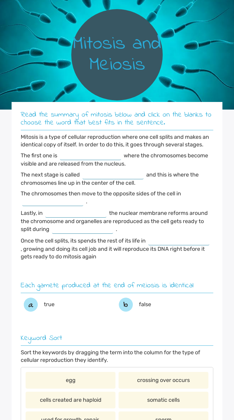 Cell reproduction worksheets and online exercises Live worksheets > English > Science > Cell reproduction. Cell reproduction worksheets and online exercises Language: English Subject: Science.