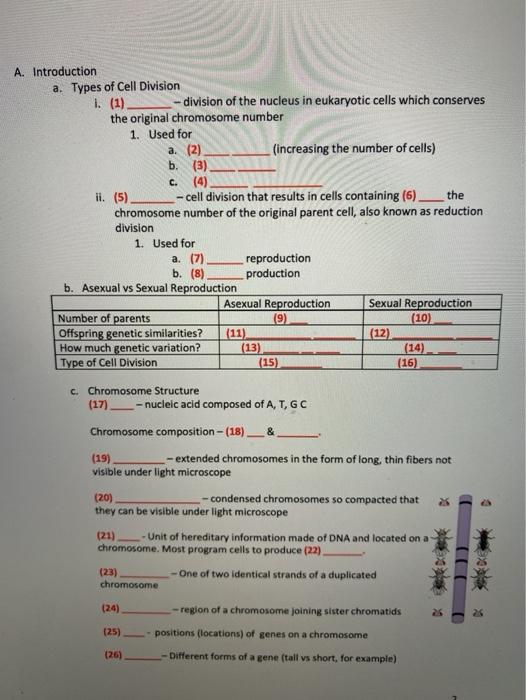 CBSE Class 8 Science Reproduction in Animals Worksheets Reproduction in Animals Worksheets very well explains the concept of reproduction. It is a process of giving rise to offspring. It is one of the valuation Mitosis is considered to be a process where a single cell gets divided into two identical daughter cells. The process of getting duplicated of DNA... Cell Reproduction Overview - Cytogenetics Questions and Answers Cytogenetics Questions and Answers - Overview of Cell Reproduction. Answer: c Explanation: In cells the DNA is replicated in the S phase. In G1 and G2 phase mainly the proteins required for mitosis is increased in quantity.