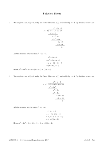 42 The Remainder And Factor Theorems Worksheet Answers
