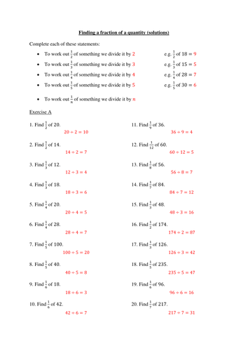 Find Fraction of a Number - Math Worksheets - SplashLearn Home > Math Worksheets > Find Fraction of a Number. Print. Help your child learn multiplication of fractions in an efficient manner with this challenging worksheet. The worksheet encourages students to apply their understanding of fractions to find fraction of a number. What better way is there for your young mathematician to learn than to have fun ... Fractions worksheets for grades 1-6 | K5 Learning Fraction worksheets for grades 1-6, starting with the introduction of the concepts of "equal parts", "parts of a whole" and "fractions of a group or set"; and proceeding to reading and writing fractions, adding, subtracting, multiplying and dividing proper and improper fractions and mixed numbers. Equivalent fractions Improper Fraction To Mixed Fraction Worksheet Pdf ... Improper Fraction To Mixed Fraction Worksheet Pdf is a very valuable resource for different styles of pupils. Whether you are in pre-school, center school, or high school, using these worksheets can assist you discover math more effectively. Fractions of a Number Worksheets - Free Printable PDF Fractions of a Number Worksheets Click here to return to the main worksheet index Click here for our other Fractions Worksheets. In these worksheets the child has to calculate the fraction of a number below 100. The fractions used in these questions all have a denominator from 2 to 10 and the answers are all whole numbers.