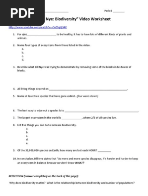 Bill Nye Biodiversity Video Worksheet Answers Pdf Bill Nye Biodiversity Video Worksheet Answers Pdf Written By admin Friday, July 17, 2020 Biodiversity worksheet provides questions for students to answer during the movie film in this program he discusses the importance of biodiversity and ecosystems and their influence on.
