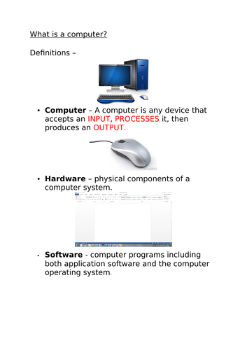 Lessons 1 to 3 - Hardware and Software - Belper Computing You might also often hear the following words being used when talking about computer hardware or computer software - peripheral, application and device. In Microsoft Word, write down the following words and write a short explanation, in your own words, of what the word means.
