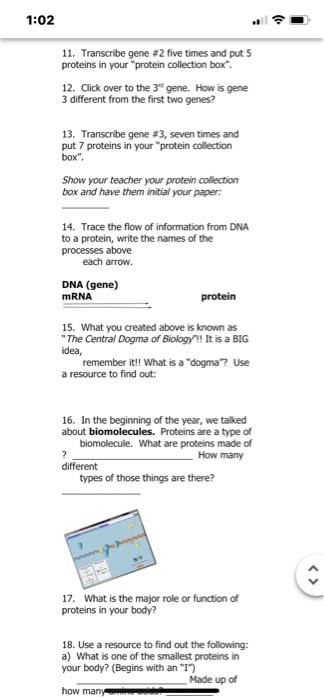 Ajang Unit 3 Writing Assignment - Basic Gene Expression ... Fill out this worksheet with your answers (the questions you need to answer are in bold ), save your worksheet with your last name in the file name (example - [LastName] Basic Gene Expression Worksheet.docx) and upload it to Canvas to be graded. 1. Examine the piece of DNA that runs across the screen. 2.