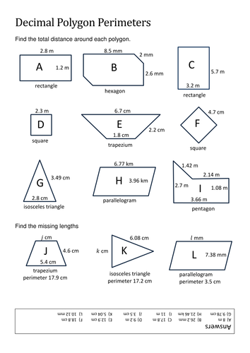 arinjayacademy.com › area-and-perimeter-worksheetsArea and Perimeter Class 6 Worksheets with Answers - Arinjay ... Area and Perimeter Worksheets Grade 6. Q.6 Find the perimeter of a regular decagon of side 3.6cm. a) 14.4 cm b) 36 cm c) 21.6 cm d) 25.2 cm. Answer. Answer: b) 36 cm. Explanation A regular decagon is a ten sided polygon that has all ten sides equal in length Length of a regular decagon =3.6 Perimeter of a regular decagon =(10xLength of each ...