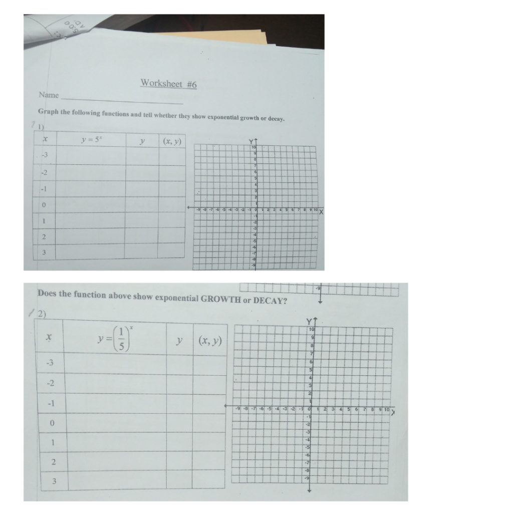 Raya, Joe / WORKSHEETS unit 5 worksheet 6 graphing exponential growth and decay functions UNIT 5 WORKSHEET 6 GRAPHING EXPONENTIAL GROWTH_DECAY.pdf 33.31 KB (Last Modified on January 18, 2019) Comments (-1)