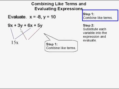 Inspiration Simplify Expressions By Combining Like Terms ... This algebra 1 basics worksheets will create algebraic statements for the student to simplify and combine like terms. Quiz Worksheet Goals. The expressions include ones where you need to combine like terms such as 2 t 9 6 t 2 use the distributive property such as 9 2 x 7 and to multiply and divide monomials such as 2 x2 5 x3 and 4 x2 y2 3 x5.