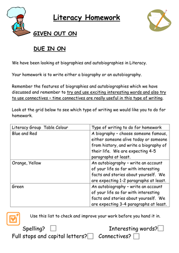Writing an autobiography worksheet