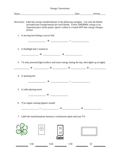 39 energy transformation worksheet middle school ... Energy Transformation Worksheet With Answers - Worksheet Data Energy Transformations Energy Transformations Mechanical Energy Energy. The final result is at the period of evaluation there s a whole lot of confusion. Energy transformation worksheet with answers. This is why you remain in the best website to see the incredible book to have.