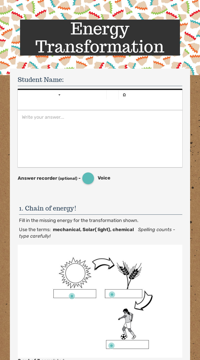 Answer Key Energy Transformation Worksheet Answers 8th ... Energy transformation activity answers 1. Give an example where the following energy changes would take place. Then they produce examples of three different energy transformations. Some of the worksheets for this concept are energytransformations energycanchangefromonetypeto energy transformation object 8th grade science energy unit information ... Energy Transformation Worksheet Answer Key - Elcacerolazo Energy Transformation Worksheet Answer Key Along with 23 Inspirational 6th Grade Language Arts Worksheets Workshee. You may discuss your answers and the reflection with your shoulder partner. We hope your happy with this 50 Energy Transformation Worksheet Answer Key idea. Sun 23 Apr 2017 041300 GMT energy transformation answer key. Energy Transformations interactive worksheet ID: 1357632 Language: English School subject: Science Grade/level: 8 Age: 11-15 Main content: Energy Transformations Other contents: Add to my workbooks (1) Download file pdf Embed in my website or blog Add to Google Classroom Energy Worksheet - 1000+ Printable Energy Worksheet Tags: energy forms and transformations sum it up worksheet, energy forms and transformations worksheet, energy types and transformations worksheet, energy types and transformations worksheet answers, forms of energy and energy transformations worksheet answer key Leave a comment Introduction To Energy Worksheet Part 1