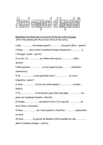 PDF Passe Compose E Imparfait Esercizi 'PASSE COMPOSE VS IMPARFAIT Learn French April 24th, 2018 - passe compose vs imparfait Learn French passe compose vs imparfait Learn French Uses of Imperfect and Compound Past tenses French Learn French Test Generally the Passé Composé is used'' Passé composé PPT worksheets by Magali2602 Teaching