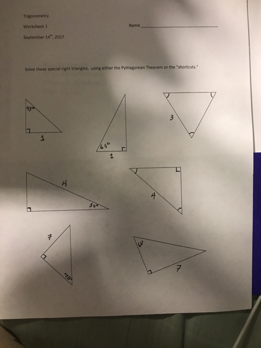 10th Grade Math Worksheets & Printables - Study.com Use our printable 10th grade math worksheets written by expert math specialists! Your students can practice their math skills with worksheets covering plane and solid geometry, proofs, and ... Special Right Triangles (Trigonometry Emphasis) Worksheets A right-angled triangle is a triangle in which one of the angles is 90° in measure. A sum of angles of a triangle needs to be 180°. However, if the remaining angles of the These worksheets and lessons have students work with special right triangle and use trig functions to find many known values.