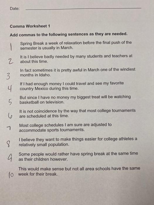 Comma practice worksheet answer key