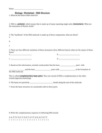 PDF Worksheet 1 - DNA Structure - Mr. Stinson'S Biology Page 1. What do the letters DNA stand for? ___________________________________________________ 2. Two scientists are given credit for discovering the structure of DNA. What is the name of those two scientists. a. b. _______________________________ 3. DNA is a polymer, which means that is made up of many repeating single units (monomers).