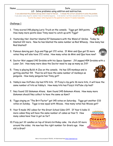 KS2 Y3 Addition & Subtraction 200 Differentiated Word Problems - Written Calculations | Teaching ...