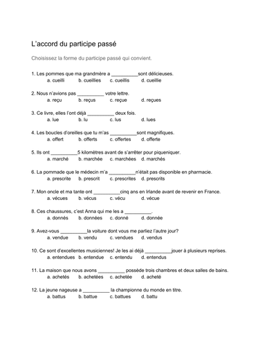 French Direct Objects - Agreement in Passé Composé - Complément d'Object Direct | Teaching Resources