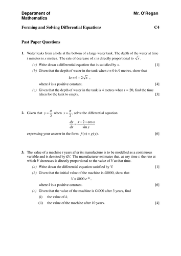 Differential equations worksheet with answers. Tactay, Troy | Math / AP Calculus AB 1-4 Worksheet Answer Key. Calc Sem 2 Unit 1 PT and Answer Key.pdf . Sem 2 Unit 1 MC A and Sem 2 Unit 2 MC B Practice Test Answers ... 3-1 Wkst - Solving Differential Equations by Separation of Variables - and Scoring Guide.pdf. Calc AB 3-2 Lesson.pdf. 3-2 Wkst - Sketching Slope Fields - and Scoring Guide.pdf ... Differential equations, solved and explained. - PlainMath We can be more exact and give all the conditions for Noethers theorem to hold and the result is that along the flow X ( t) = q ( t), p ( t) in phase space given by a solution with initial conditions X (0), the function H (q,p) always takes the same values. It defines surfaces in phase space indexed by initial conditions X (0). Worksheet On Differential Equations - Google Groups All groups and messages ... ... Differential Equations Worksheet With Answers / Differential Equations ... Find the general solution of the differential equation. Worksheet by kuta software llc. Solving elementary differential equations worksheet 3: Find the general solution of each differential equation. A solution y(x) of an ode is a function y that satisfies the equation. Which of the following is the solution to the differential equation = 2 sin ...