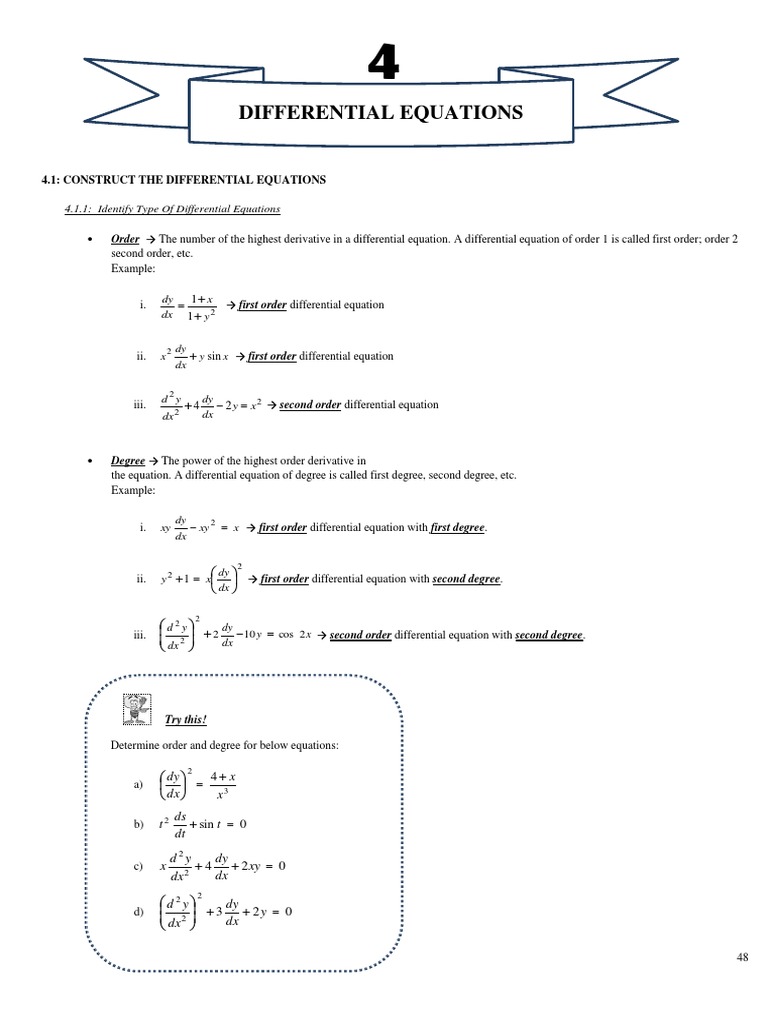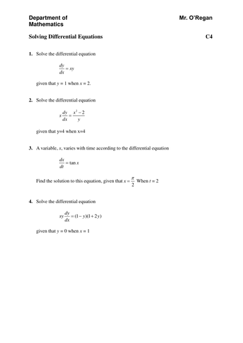 Class 12 Mathematics Differentials Equation Worksheets We have provided below free printable Class 12 Mathematics Differentials Equation Worksheets for Download in PDF.The worksheets have been designed based on the latest NCERT Book for Class 12 Mathematics Differentials Equation.These Worksheets for Grade 12 Mathematics Differentials Equation cover all important topics which can come in your standard 12 tests and examinations. Worksheets Class 12 Mathematics Differential Equations Worksheets Class 12 Mathematics Differential Equations Worksheets for Class 12 Question. The solution of the differential equation cos2x d2y/dx2 = 1 is: (a) y = log cos x + cx (b) y = logsec x + c 1 x + c 2 (c) y = logsec x − c 1 x + c 2 (d) None of these Answer Question. Testing Solutions To Equations Worksheet - Google Groups All groups and messages ... ... Solving Cubic Equations Worksheet - onlinemath4all Answer : 4x 3 - 7x + 3 = 0. Check whether the values 1, -1, 2, -2, ..... could be one of the solutions using synthetic division. ... Quadratic equations word problems worksheet. Integers and absolute value worksheets. Decimal place value worksheets. Distributive property of multiplication worksheet - I.