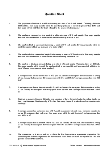 Geametric Sequence Answer Key Worksheets - Learny Kids Displaying top 8 worksheets found for - Geametric Sequence Answer Key. Some of the worksheets for this concept are Geometric sequences date period, Geometric sequence 9nkkzr, Arithmetic geometric sequence 9nkkzr, Neshaminy school district overview, Geometric sequences and series, Sequences work 1, Geometric sequences and series date period, Lesson practice a 12 1 geometric sequences. Geometric Sequence Worksheet - GCSE Maths [FREE] Help your students prepare for their Maths GCSE with this free geometric sequence worksheet of 38 questions and answers. Section 1 of the geometric sequence worksheet contains 27 skills-based geometric sequence questions, in 3 groups to support differentiation. Section 2 contains 3 applied geometric sequence questions with a mix of worded ...