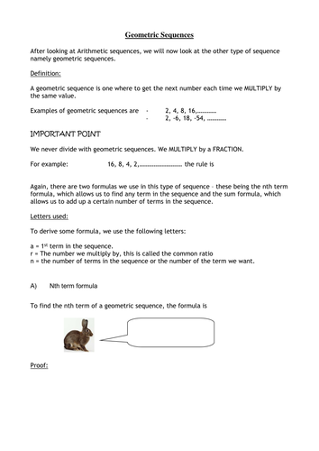 Geometric sequences for GCSE Maths - Worksheet and Answers File previews. pdf, 344.42 KB. pdf, 340.43 KB. Geometric sequences for GCSE Maths. A one page worksheet on Geometric sequences. There are 2 pdf documents, one is the worksheet, and the other contains the answers. Get all our worksheets at maths-school.co.uk.