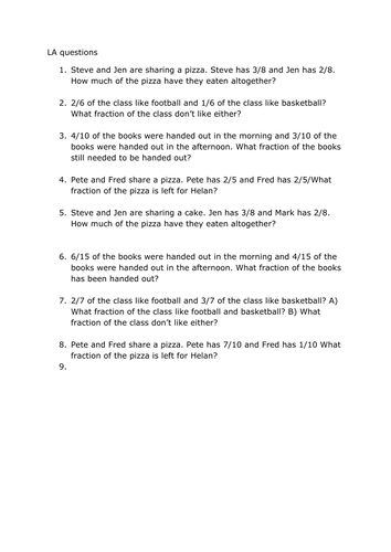 Unlike Fractions Addition Word Problems - Free Worksheets Unlike Fractions Addition Word Problems | Adding Fractions Word Problem Unlike Fractions Addition Word Problems Unlike Fractions Addition Word Problems: Solve these adding unlike fractions word problems. Type the answers as in '11/17′. Click the button below to try all our FREE PDF printable fraction worksheets. Try all Fractions Worksheet!