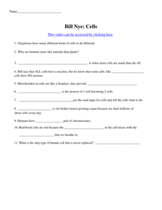Bill Nye Cells Worksheet Teaching Resources This video worksheet is to accompany Bill Nye the Science Guy's CELLS episode (Season 1, Episode 17). The video guide includes 17 questions (i.e. a combination of fill-in-the blank, true/false, and/or short answer questions) for students to answer as they watch the video. Watching a video is no longer a passive activity.