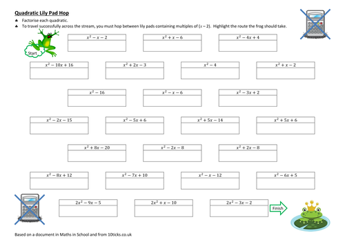 Factoring quadratic expressions worksheet. PDF Factoring Quadratic Expressions - Lyons Township High School F Worksheet by Kuta Software LLC Answers to Factoring Quadratic Expressions (ID: 1) 1) n+ 2)(n+ 6)2) (n− 7)(n− 10)3) (k+ 4)(k− 6)4) (r+ 8)(r+ 5) 5) (p− 10)(p− 6)6) (k− 8)(k− 5)7) (v− 4)(v+ 8)8) (x− 5)(x− 9) 9) (x+ 6)(x+ 10)10) (k+ 9)(k+ 6)11) (5n− 2)(n+ 9)12) (5a+ 1)(a− 3) PDF CCSS HSA.SSE.B.3.A Expressions (B) - Cazoom Maths Worksheets Factoring Quadratic Expressions (B) Factor the following quadratic expressions. Section A 1) x2+ 7x - 30 2) x2+ 9x + 20 3) x2+ 8x - 9 4) x2- 18x + 80 5) x2-11x + 28 6) x2+ 6x - 72 7) x2- 9x - 22 8) x2- x - 12 9) x2+ 3x - 108 10) x2- 17x + 72 11) x2- x - 42 12) x2- 15x + 56 Section B 1) 2x2+ 3x + 1 2) 2x2+ 5x + 2 Factoring Quadratic Expressions - Kuta Software 19) For what values of b is the expression factorable? x2 + bx + 12 13 , 8, 7, −13 , −8, −7 20) Name four values of b which make the expression factorable: x2 − 3x + b Many answers. Ex: 0, 2, −4, −10 , −18-2-Create your own worksheets like this one with Infinite Algebra 2. Free trial available at KutaSoftware.com 9 of the best factorising quadratics worksheets and resources for KS4 ... 5 | Use quadratic equations to bring together mathematical techniques. Quadratic expressions are considerably more complicated to work with than linear expressions, and students often find them hard to handle. Students may carry out factorising of quadratics by applying poorly-understood procedures that make little mathematical sense to them, and this can be especially so when it comes to non ...