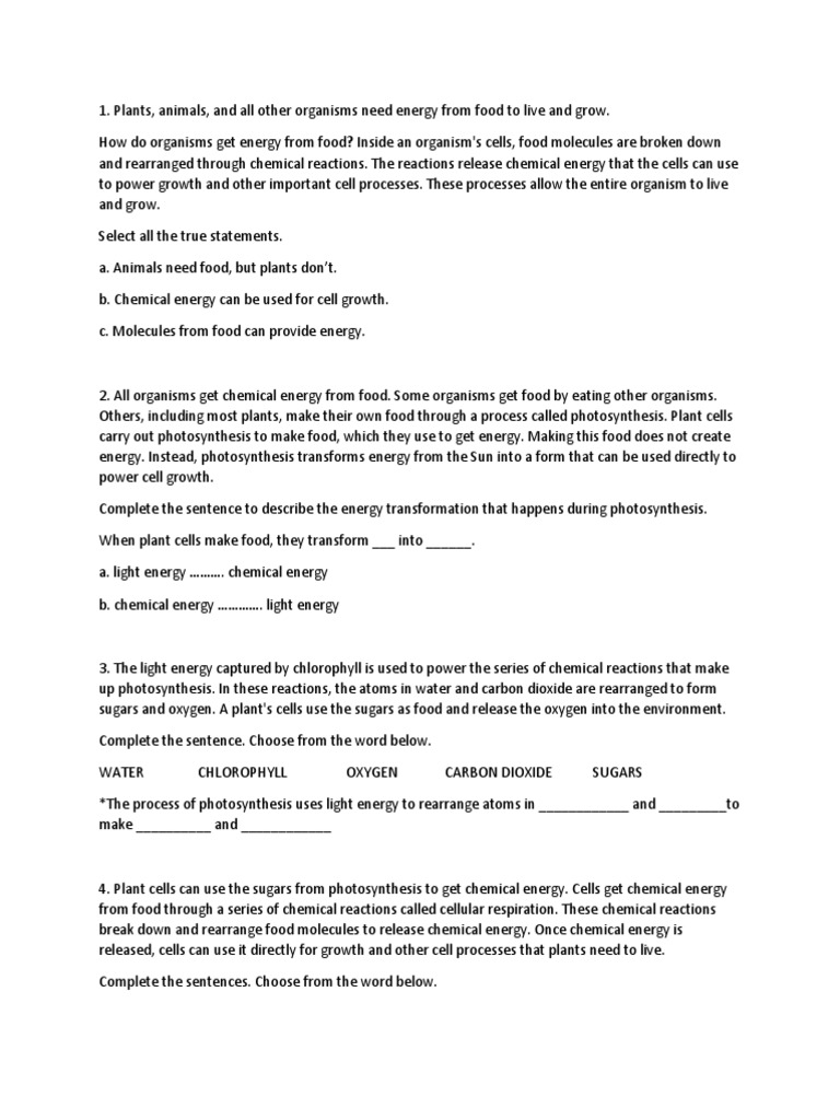 Cell processes and energy photosynthesis worksheet answers. Year 7 Science Worksheets | Topic Revision & Tests With Answers … Your child can learn, practice and test their year 7 (age 11 - 12) science skills with these automatically marked interactive year 7 science worksheets.Year 7 is your child's first exciting introduction to Secondary School and more independent learning, with a range of exciting year 7 science topics to learn! The wacky history of cell theory - Lauren Royal-Woods View full lesson: discovery isn't as simple as one good experiment. The weird and wonder... NCERT Solutions For Class 11 Biology | Physics Wallah By photosynthesis, the light energy is transformed into chemical potential energy and stored in the molecules of organic food, i.e. sugar molecules in plants. Besides this, photosynthesis is the only mechanism of generation of oxygen on earth. Hence; photosynthesis may be described as the lifeline for the biotic world. Biology Notes Form 1 PDF | Biology Form 1 Questions and ... • Light supplies the energy for photosynthesis • Plants kept in the dark do not form starch • Generally, increase in light intensity up to a certain optimum, increases the rate of photosynthesis • The optimum depends on the habitat of the plant • Plants that grow in shady places have a lower optimum than those that grow in sunny ...