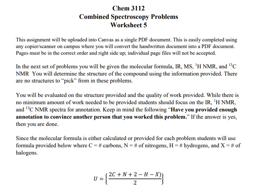 H NMR Spectroscopy Practice Worksheet .pdf - 1... 1 H#NMR Spectroscopy Worksheet Part I For each of the molecular formulas shown below calculate the index of hydrogen deficiency (IHD). In addition, suggest three possible chemical structures that are consistent with the degree of unsaturation.