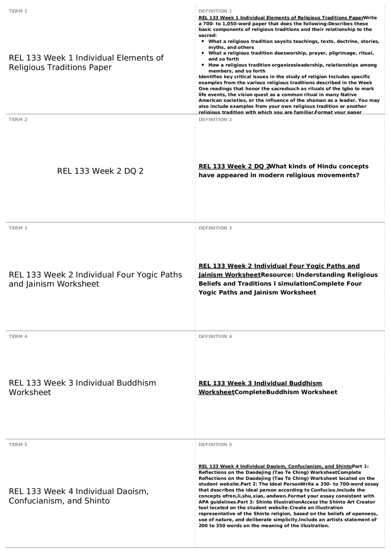 Rel 133 week 3 buddhism worksheet by Phoenixtutor - Issuu Rel 133 week 3 buddhism worksheet. REL133 World Religious Traditions I REL 133 Week 1 Elements of Religious Traditions Paper Price: $6.99. Description: Individual Assignment: Elements of Religious ... REL 133 WEEK 3 Buddhism Worksheet and Paper Summarize the history of Buddhism and the life of Buddha. Explain the basic teachings and moral aspects of Buddhism. Explain what makes the school of Buddhism you selected unique. Format citations and references consistent with course-level APA guidelines. Submit your assignment to the Assignment Files tab. REL 133 WEEK 3 Buddhism Worksheet and ...