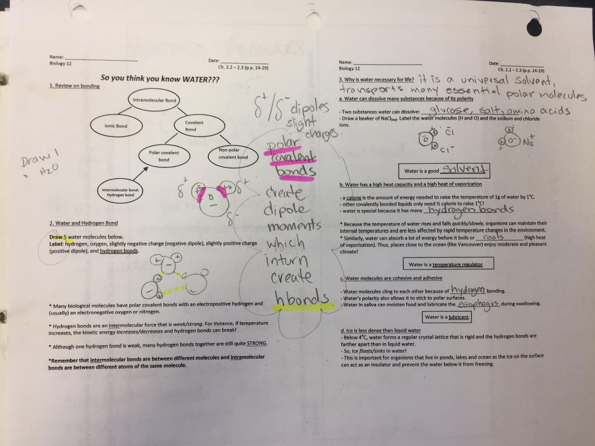 Worksheet polarity of bonds answers. Naming Compounds Practice Worksheet - Loudoun County Public … B) deciding if double bonds are present in a molecule C) formulating a statement of the octet rule D) determining the number of single bonds present in a molecule E) predicting the polarity of a bond 83) Which statement about electronegativity is incorrect? A) Within a periodic table group, electronegativity increases from bottom to top. Name: Period: Properties of Water Worksheet - LPS Properties of Water Worksheet . Word Bank: Covalent solvent deposition dissolve cohesion surface cooler universal tension polar viscosity condensation negatively adhesion positively sublimation . 1. The hydrogen and oxygen atoms are held together by _____ bonds. 2. The electrons are not shared equally creating a _____ molecule. 3. The polarity of water allows it to … Biochemical Properties of Water - Advanced ( Read ) | Biology 3 sept. 2013 · Hydrogen bonds cause water molecules to line up less efficiently in ice than in liquid water. As a result, water molecules are spaced farther apart in ice, giving ice a lower density than liquid water. A substance with lower density floats on a substance with higher density. This explains why ice floats on liquid water, whereas many other solids sink to the bottom of liquid … General Chemistry 1 PDF | PDF | Gases | Molecules - Scribd The plunger is set to touch being made up of particles. the wood block, as shown below: It is likely that their answers will be based on what they will recall from experience and from what they learned from junior high school: that the plunger can be moved more easily in the syringe containing an entrapped gas than in the other syringe containing a solid.