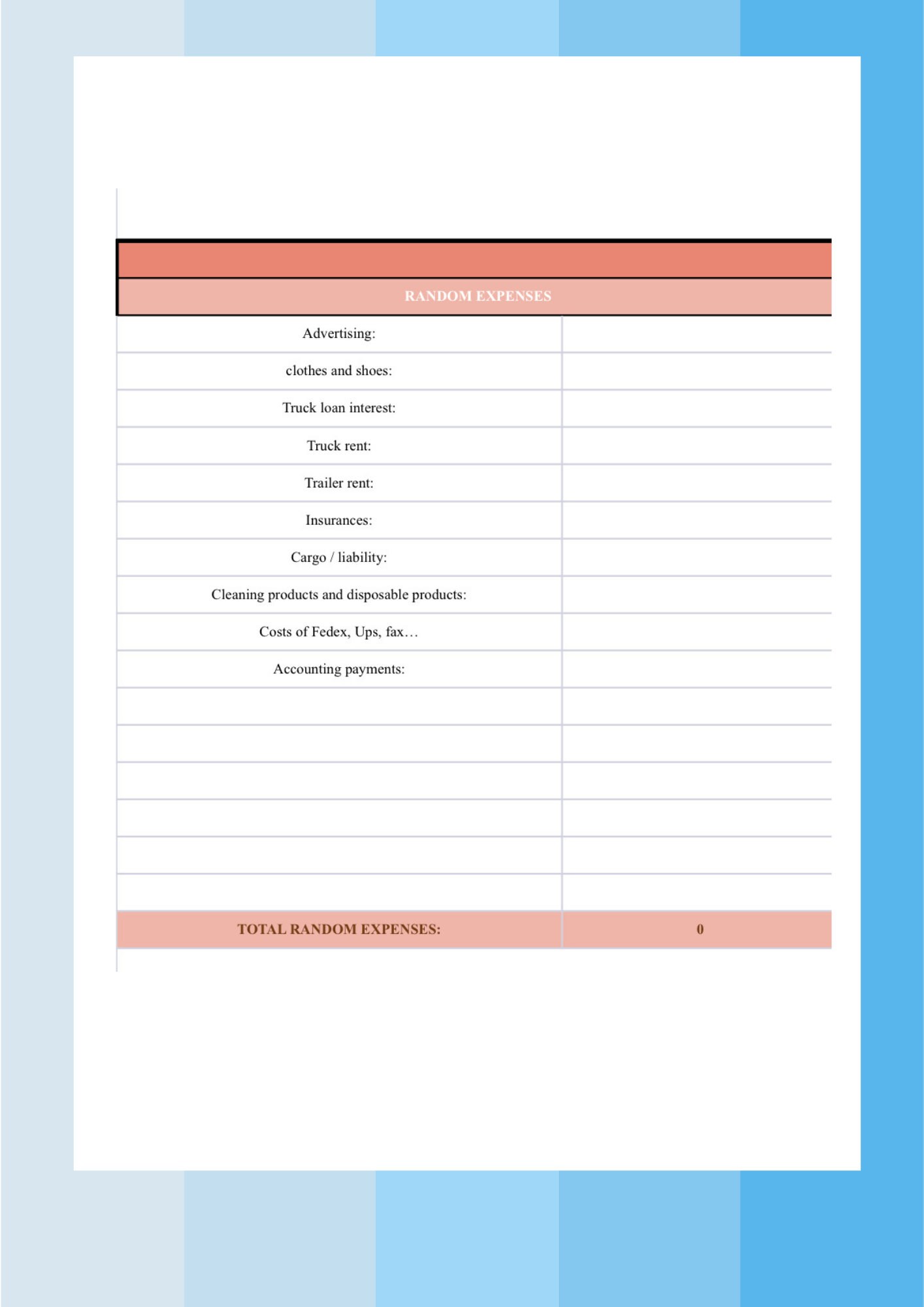 Truck Driver Expenses Worksheet PDF Form - FormsPal View, edit, and fill in truck driver expenses worksheet in no time with FormsPal! A simple online platform to access legal papers and PDFs in a few seconds. Trucker-expense-worksheet.pdf Transportation Expense Worksheet. Name_________________________ ... Advertising Truck lettering, Classified ads, etc. Commissions and Fees. ATM Fees.