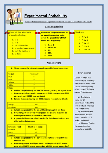 Theoretical and experimental probability worksheet. Digital Object Identifier System 13/05/2021 · This is the web site of the International DOI Foundation (IDF), a not-for-profit membership organization that is the governance and management body for the federation of Registration Agencies providing Digital Object Identifier (DOI) services and registration, and is the registration authority for the ISO standard (ISO 26324) for the DOI system. Assignment Essays - Best Custom Writing Services Get 24⁄7 customer support help when you place a homework help service order with us. We will guide you on how to place your essay help, proofreading and editing your draft – fixing the grammar, spelling, or formatting of your paper easily and cheaply. Learn About Calculating Probability With The Following Examples … In Experiment 1 the probability of each outcome is always the same. The probability of landing on each color of the spinner is always one fourth. In Experiment 2, the probability of rolling each number on the die is always one sixth. In both of these experiments, the outcomes are equally likely to occur. Let's look at an experiment in which the ... Experimental Probability (Definition, Formula, Examples) - BYJUS Experimental probability, also known as Empirical probability, is based on actual experiments and adequate recordings of the happening of events. To determine the occurrence of any event, a series of actual experiments are conducted. Experiments which do not have a fixed result are known as random experiments. The outcome of such experiments is uncertain. Random …