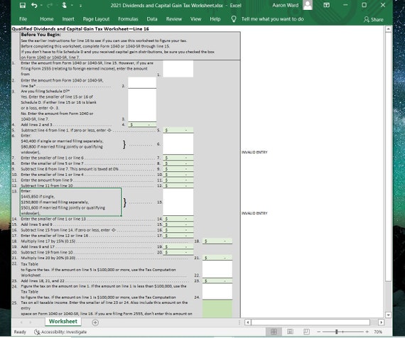Gain Tax Dividends Capital And Form Worksheet Qualified Foreign Earned Income Tax Worksheet (Located in Forms View > 2555Tax folder > Foreign Earned Income Tax Wrk tab) Per the IRS Form 1040 Instructions, if any of the following apply to the taxpayer, the Qualified Dividends and Capital Gain Tax Worksheet will be used to compute the tax on Form 1040 Schedule D Tax Worksheet For example, under prior ...