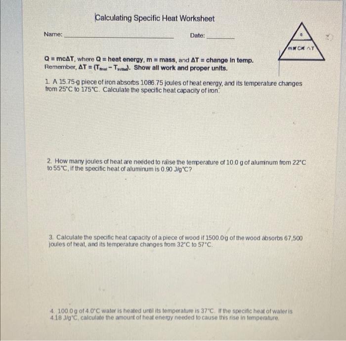 Calculating specific heat worksheet