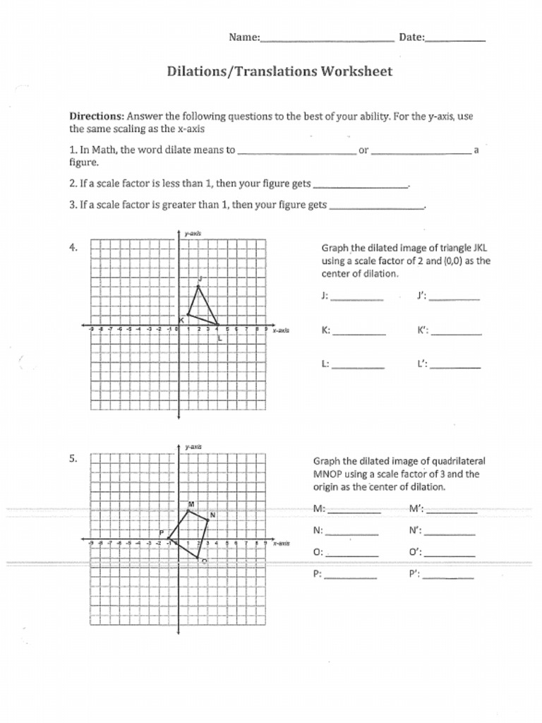 Dilations translations worksheet answer key