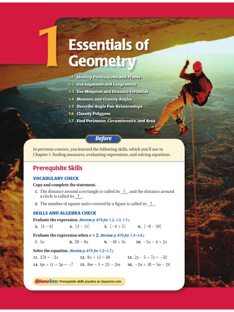 Geometry – Easy Peasy All-in-One High School Check your answers, Geometry 11.6. Lesson 159. Do three problems for SAT practice. 11.6. Surface Area and Volume of Spheres. Do numbers 2-26 EVENS in the review questions. Check your answers, Geometry 11.6. NOTE – Answer Corrections: (#20 is 47712.94) (#26 – calculate it in inches with a melt rate of 2 inches cubed) Record your score out of 13. Classroom Resources - National Council of Teachers of … When students become active doers of mathematics, the greatest gains of their mathematical thinking can be realized. Both members and non-members can engage with resources to support the implementation of the Notice and Wonder strategy on this webpage. Big Ideas Math Geometry Answers Chapter 2 Reasoning and ... Feb 12, 2021 · If you ever stuck up during your Homework or Assignments regarding Geometry Concepts take the help of Big Ideas Math Answers Geometry Ch 2 Reasoning and Proofs available. Solve the BIM Geometry Ch 2 Reasoning and Proofs Textbook Questions provided with Solutions given by subject experts. Big Ideas Math Geometry Answers Chapter 1 Basics of Geometry Feb 12, 2021 · Use the Segment Addition Postulate to find XZ. Answer: The given figure is: We know that, “The Segment Addition Postulate” states that given 2 points A and C, a third point B lies on the line segment AC if and only if the distances between the points satisfy the equation AB + BC = AC So, From the above figure, XZ = XY + YZ XZ = 23 + 50 XZ = 73