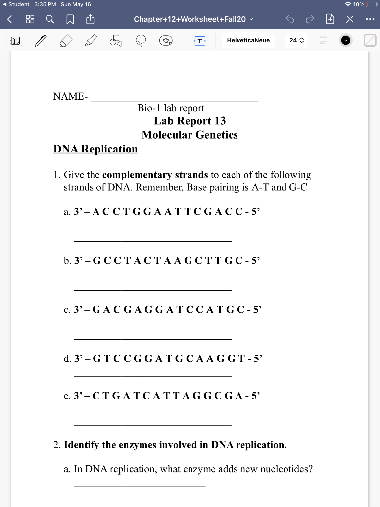 Worksheet 16 dna replication basic concepts answers. PHSchool.com Retirement–Prentice Hall–Savvas Learning Company PHSchool.com was retired due to Adobe’s decision to stop supporting Flash in 2020. Please contact Savvas Learning Company for product support. DNA Replication Worksheet 16 CH 11 Section 11.1 - Quizlet What is the first step in the process of DNA replication Copy's the chromosome How does each separated strand begin to rebuild a new strand Unzips and creates an identical strand What is the origin of each strand in the replicated DNA The original DNA what kinds of substance facilitates the hydrogen bonding of nucleotides DNA PLOMERASE Dna And Replication Answers Worksheets - K12 Workbook *Click on Open button to open and print to worksheet. 1. DNA Replication & Protein Synthesis Answers 2. Dna Structure And Function Worksheet Answers 3. Dna Structure Worksheet Answers 4. DNA 5. Dna Structure Practice Answer Key 6. KM 754e-20151221092331 7. The Components & Structure of DNA 8. Dna Replication Worksheet With Answers DNA Structure and replication worksheet answers - StuDocu Forecasting, Time Series, and Regression DNA Structure and replication worksheet answers This Assignment will explain about structure of DNA and Process of Replication.... View more University California State University San Marcos Course Invertebrate Biology (BIOL 379 ) Uploaded by AP Ashish Pandey Academic year 2021/2022 Helpful?