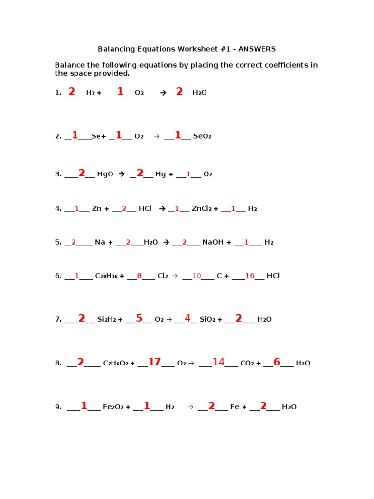 Free Balancing Chemical Equations Worksheets [With Answers] Balancing chemical equations worksheet is given to the students to balance the chemical equations. Many students find it difficult to balance the equations. Balancing requires a lot of different techniques, formulas, symbols, and knowledge of reactions. During balancing equations, many students lose hope and struggle to solve it then theyRead More "Free Balancing Chemical Equations Worksheets ...
